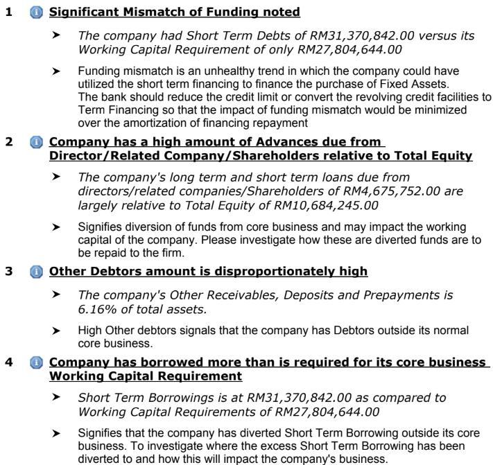 Examples of Adjustments are; "Are the Financial Accouns Audited?", "Are the Financials Qualified?" and "High Risk Industry".
