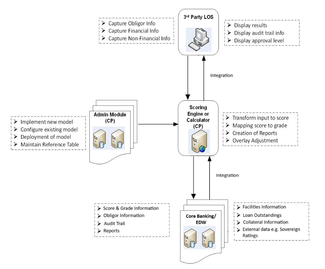 The Scorecard & Risk Rules is extremely flexible and is configurable by the User. It provides a rating for the Borrower or Obligor and the Facility.