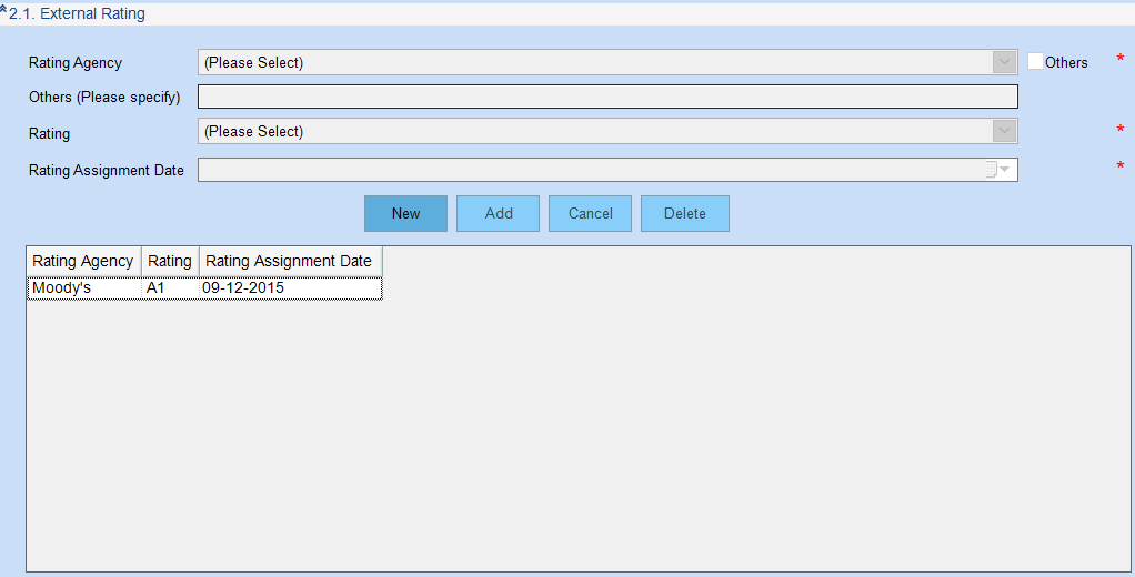 Our System supports the use of external data such as external ratings by Moody’s. S&P and Fitch in your Scorecard.
